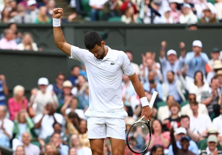 Con la victoria, Djokovic, quien busca el quinto título consecutivo en Wimbledon, alcanzó el triunfo 33 seguido en el césped del All England Club y va por su vigesimocuarto Grand Slam.